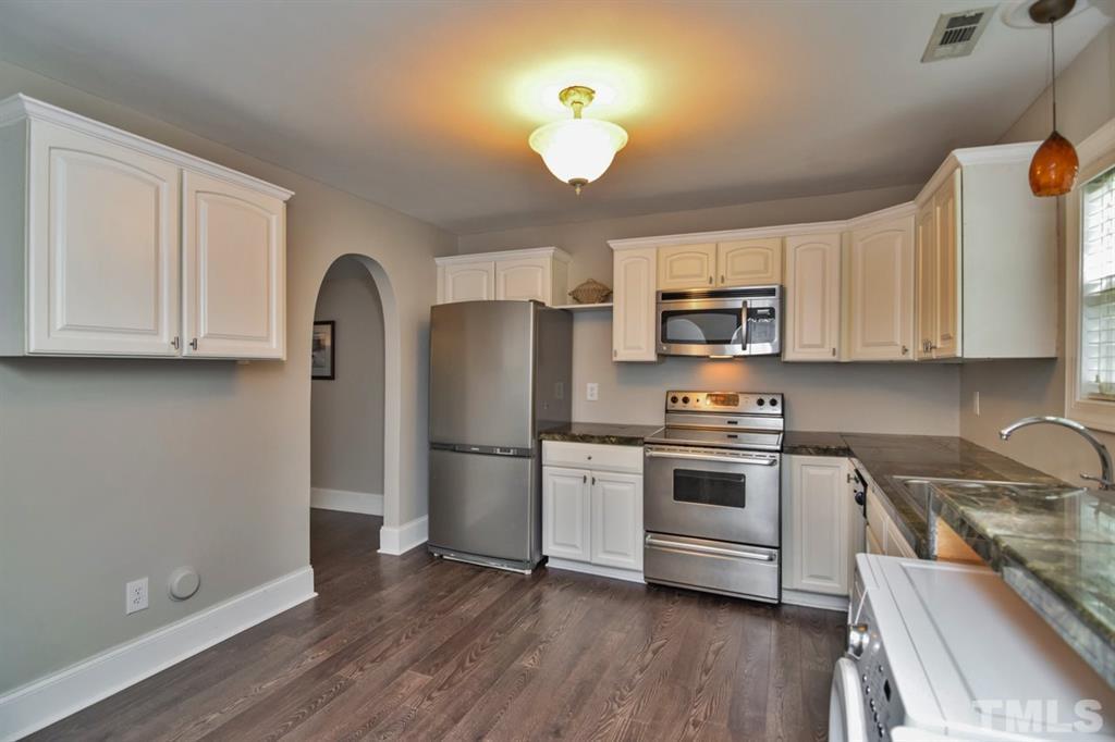 areas, first floor laundry, and loads of natural light. Kitchen has ample cabinet storage, granite countertops and stainless steel appliances. Spacious master